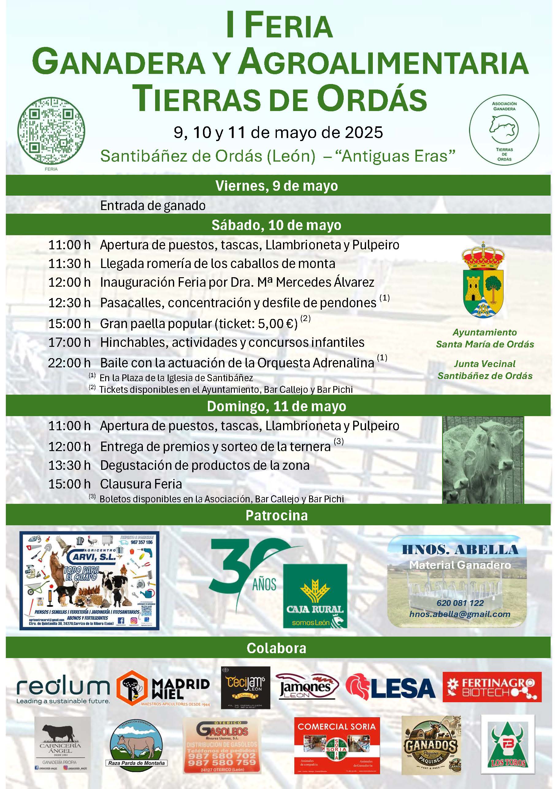 La feria contó con el apoyo del Ayuntamiento de Santa María de Ordás y la Junta Vecinal de Santibáñez de Ordás, además del respaldo de patrocinadores como Caja Rural de Zamora, Agricentro Carvi y Hermanos Abella, entre otros colaboradores.